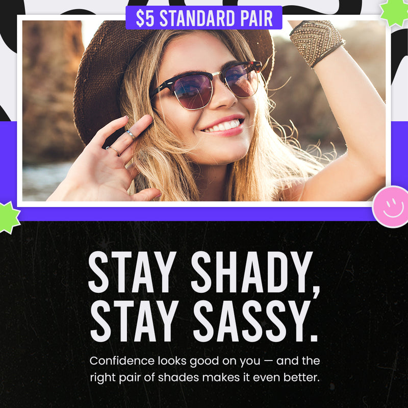 From rock music to muscle cars - Nothing beats the Classics! Featuring timeless aviators and retro throwbacks, the Classic Collection will take you back to the good ol' days in style. So whether it's black tie or tie-dye, we have the perfect pair for you!